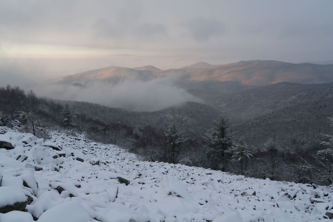 Many of the views were socked in due to snow, but the view from Blackrock Mountain was good. Weather-wise, the 1-3″ of snow was definitely on the 3″+ side. We had overnight lows in the 20s, but didn’t have the predicted 20 MPH winds.