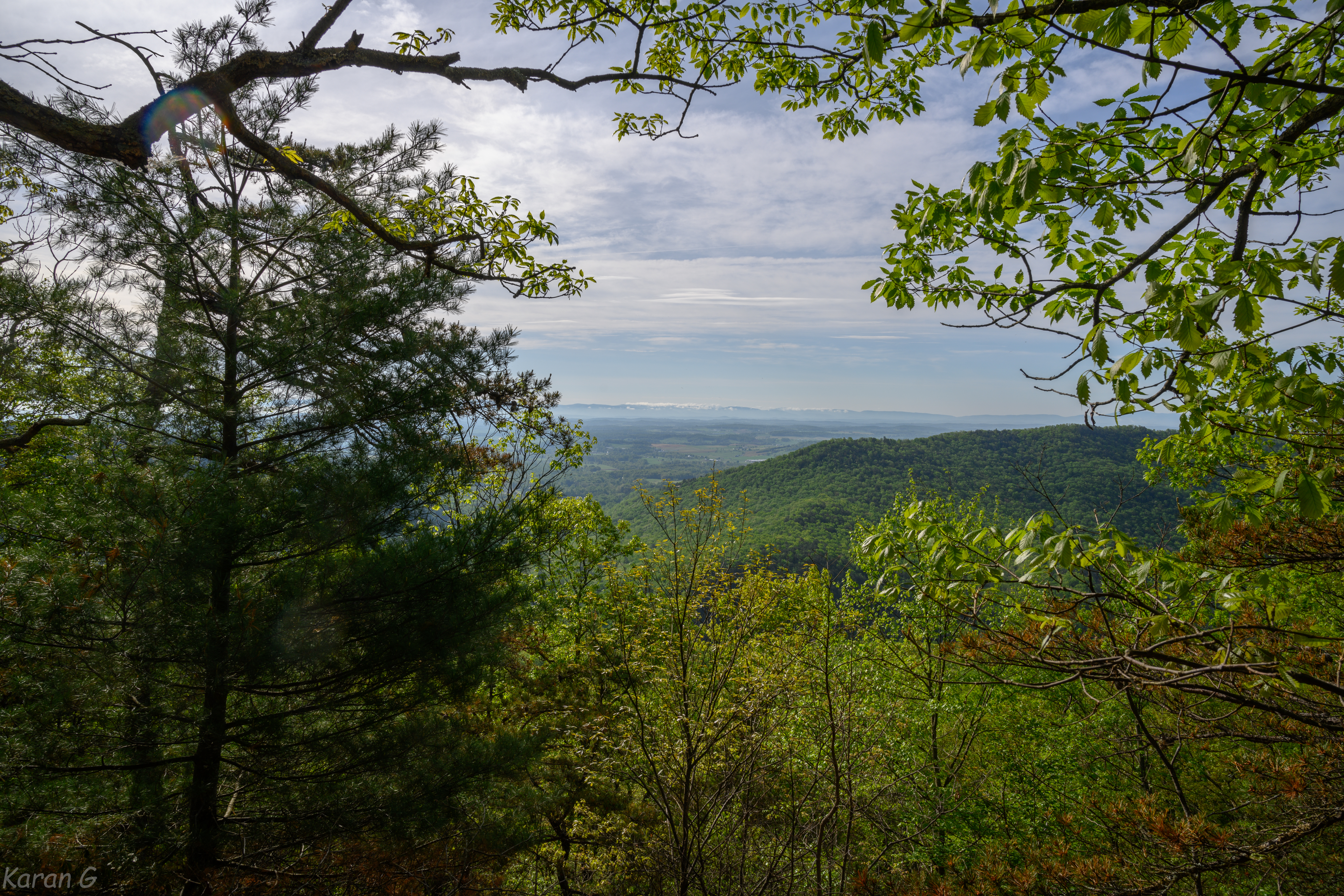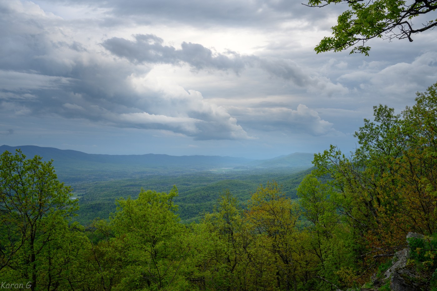 On Friday afternoon, Bryan, Logan, and I met Karan at Vienna for our trip to the Wild Oak trail and Shenandoah Mountain. The weather was beautiful but the forecast was calling for rain on Saturday. A downpour during our drive to George Washington National Forest added to our foreboding. We did see a rainbow though!