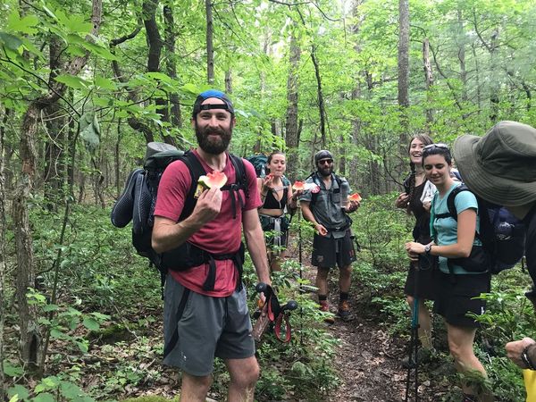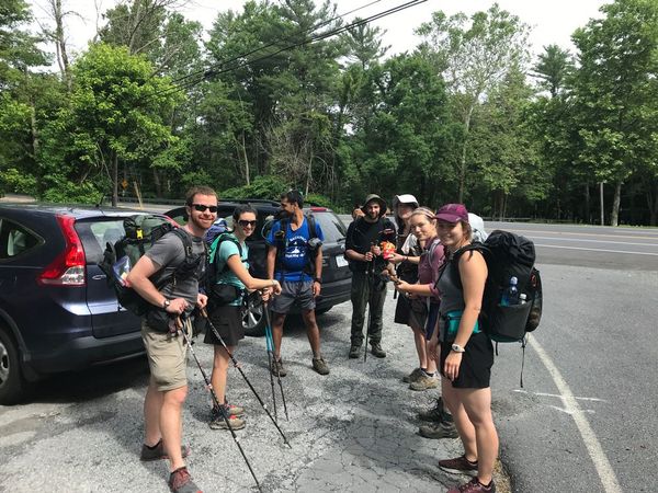 The next morning we were on the trail by 7:30am. Some of us were out of trail magic but Crusher and Ashley continued to dole out their watermelon and bags of berries. The trail was pretty mild but the high humidity had us drenched in sweat at every minor climb. Cassie unloaded the last of her clementines just as we walked in to Pen Mar to find Trang there chatting with a spunky senior couple. We took our group “prom” photo, reversed the shuttle and headed to the Gettysburg ABC to celebrate.