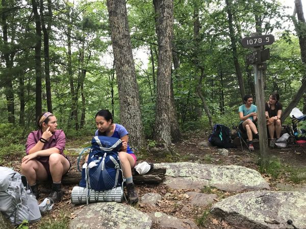 Around noon, we took a lunch break at the Rocky Mountain Shelter intersection. Some of us jealously eyed Kate’s ultralight chair as we took a seat on the surrounding logs.