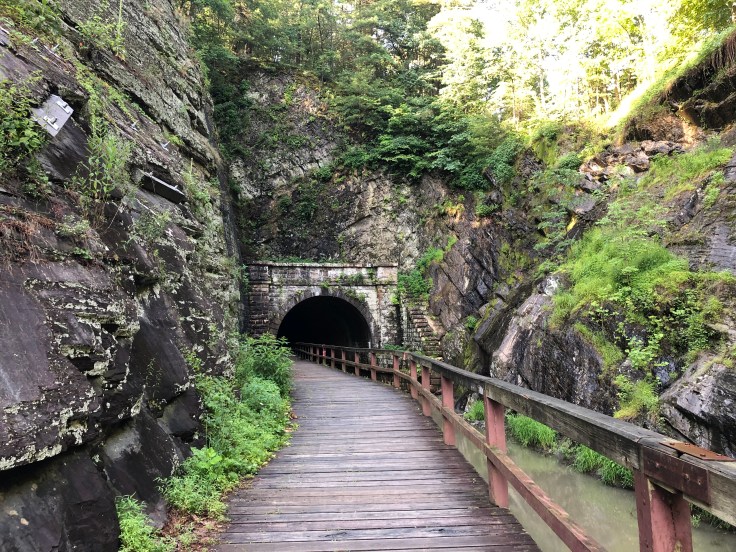 Scenery along the C&O varies, from locks and lockhouses, to steep rock cliffs, water lily plants, turtles, and rivers, and the mile-long Paw Paw Tunnel. A bike light was donated to the gods of the canal when Bill’s light took a tumble in the middle of the tunnel and landed with a splash in the pitch dark water below.
