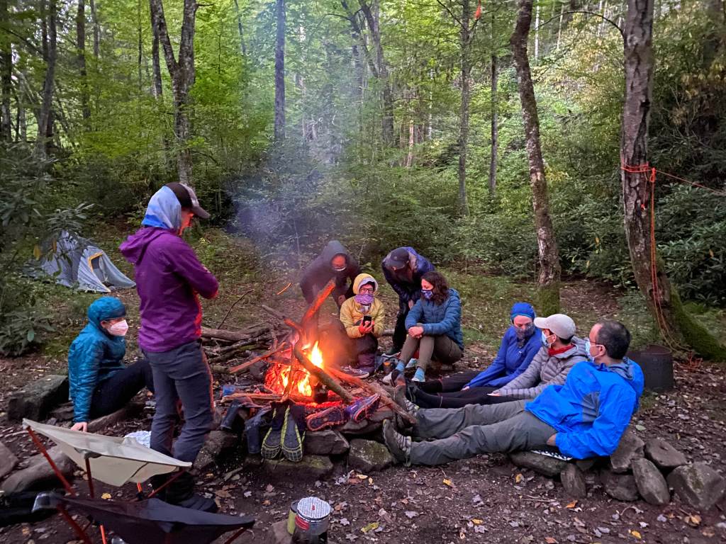 But everyone came back together for the end of the second act – dinner around a campfire. Ginny and Ian shared a cherry-bourbon liquor, Aileen the pictures of her newest grandchild. As Vivien fueled the fire, each hiker took turns stoking the collective rage against a common foe (in this case, Trump, who gives orange fools a bad name). By nine o’clock, the fire had been snuffed and the group went to sleep.