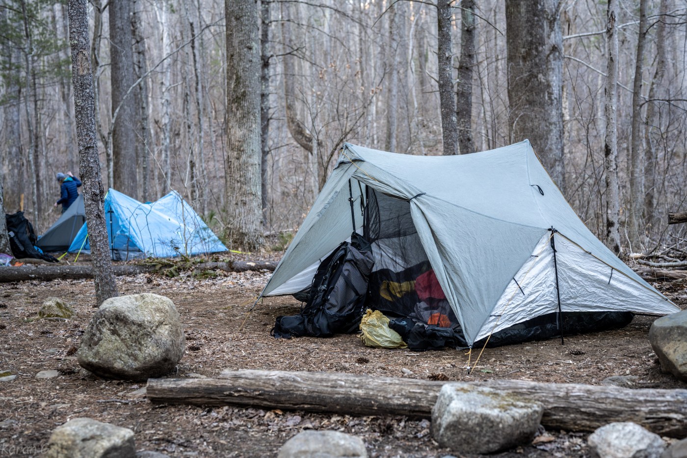 We were all able to set up camp and start cooking before it got dark. Without a campfire, we lingered for as long as we could stay warm before retreating to our respective shelters. It got chilly overnight and remained that way as we started up the Hannah Run Trail in the morning. It was a long and steady climb. I enjoyed seeing the remnants of old fireplaces and stone walls. It made me wonder about who used to live there!