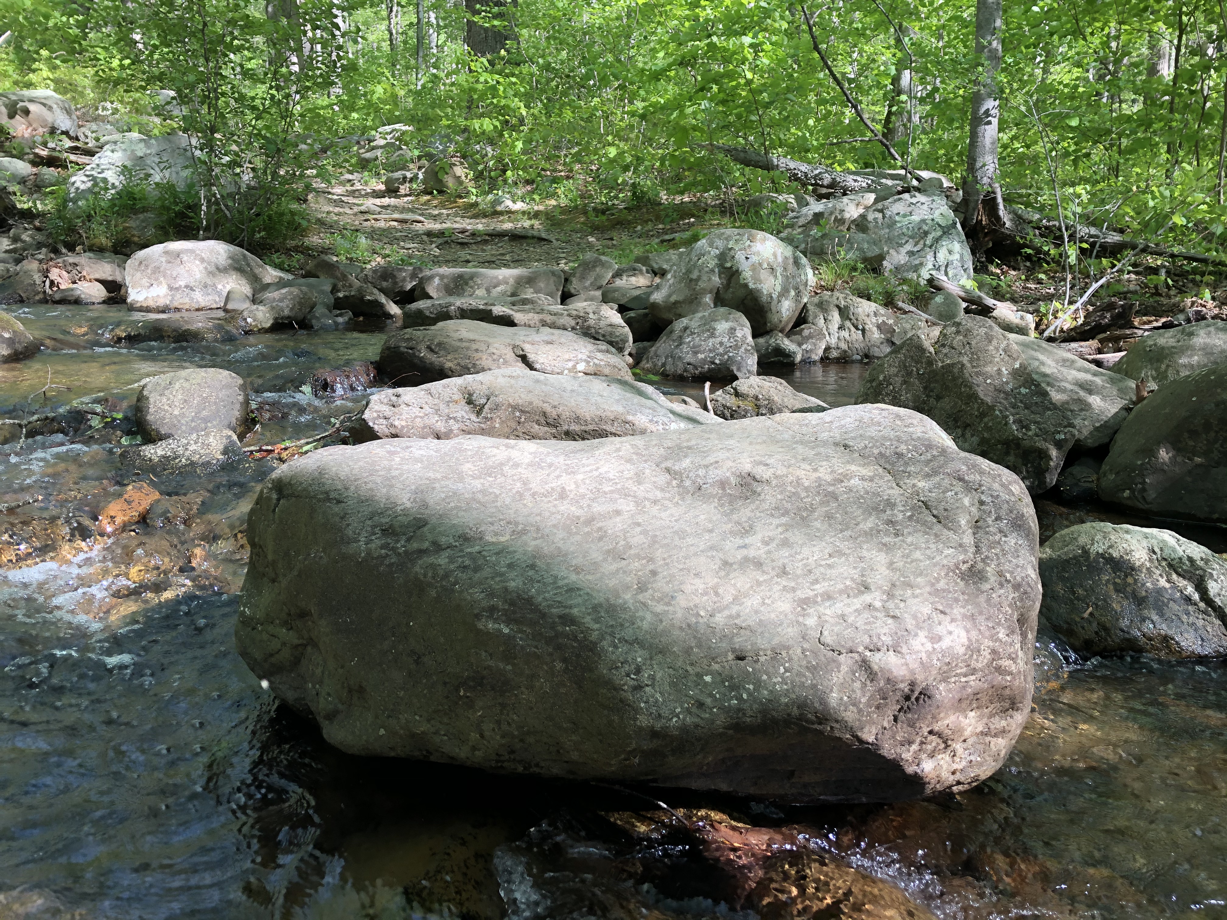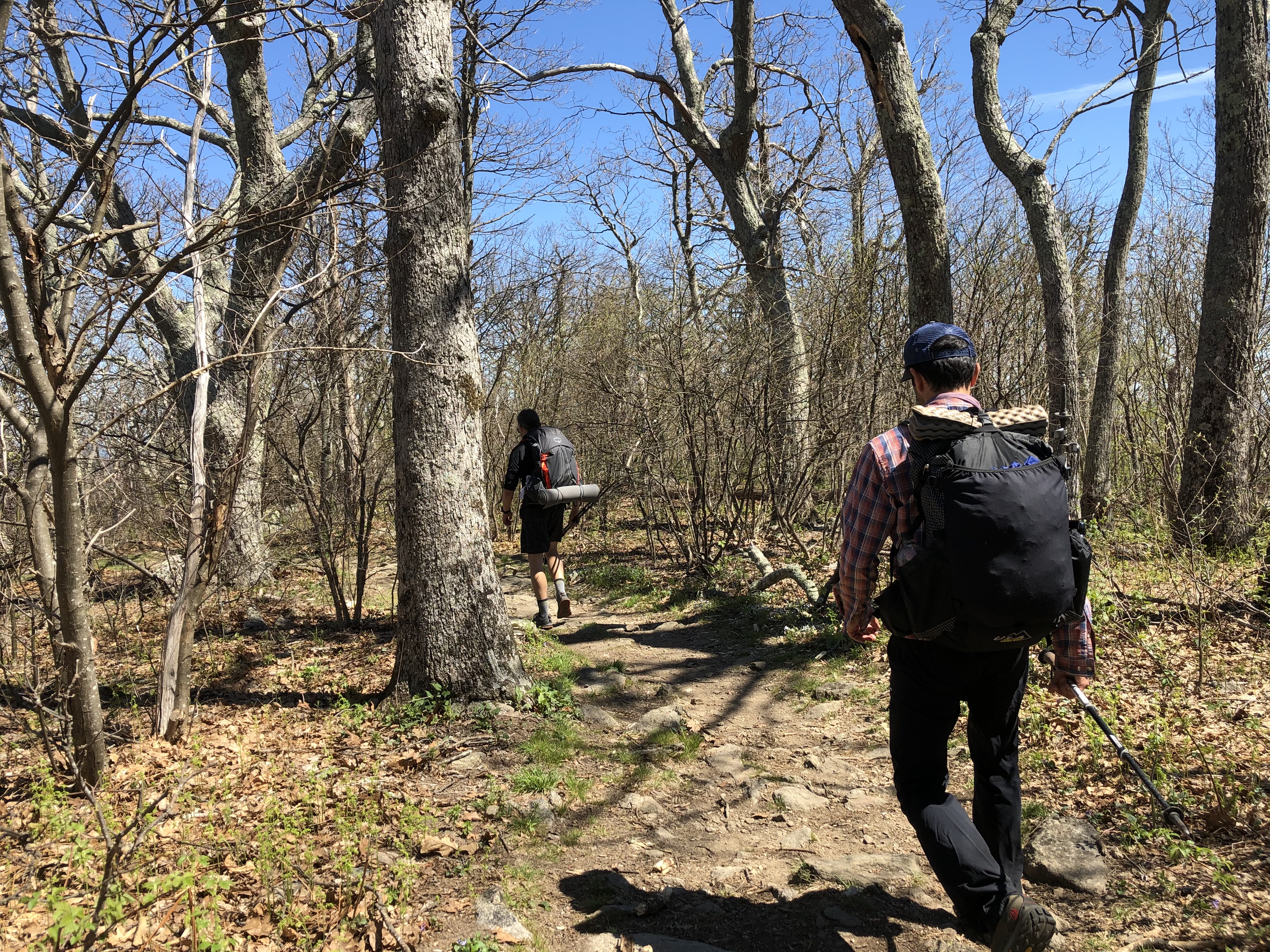 Unsure whether we’d encounter flowing water again today, we all filled up as we crossed the Hazel River. I’d planned for us to camp a little further down trail, near the junction of the Catlett Spur and Hazel Mountain Trails, but once there we didn’t find enough suitable space for us all to stay comfortably together. Though fairly flat, this small area largely was too overgrown, rocky, or wet to call home for the night.