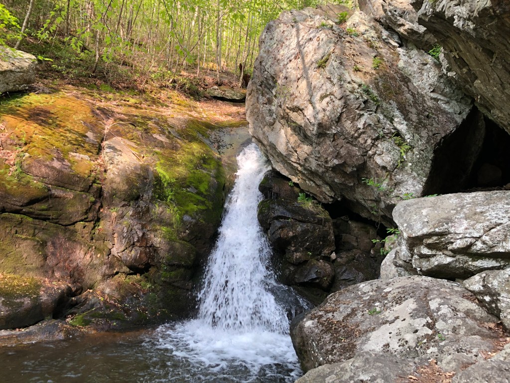 Thankfully, Shane remembered a good spot (or spots) along the White Rocks Trail, where we were planning to walk Sunday anyway, so we turned around and made our way there. By the time we reached camp, pretty near the Hazel Falls, it had been a full day of nearly 15 miles (if my phone’s distance tracker is to be believed). We were all grateful to have a nice spacious place to ourselves. Coming here turned out to be a good choice. Dinner followed as the light lingered. In great DC UL fashion, a wide-ranging conversation unfolded, where I for one learned some interesting things, not least of which was that steel produced since the dawn of the Atomic Age (till recently, anyway) contains radioactive isotopes. (I always forget to check for those when I shop for steel!) Night fell and we retired to our shelters or ‘cowboy camps’ (no rain forecast).