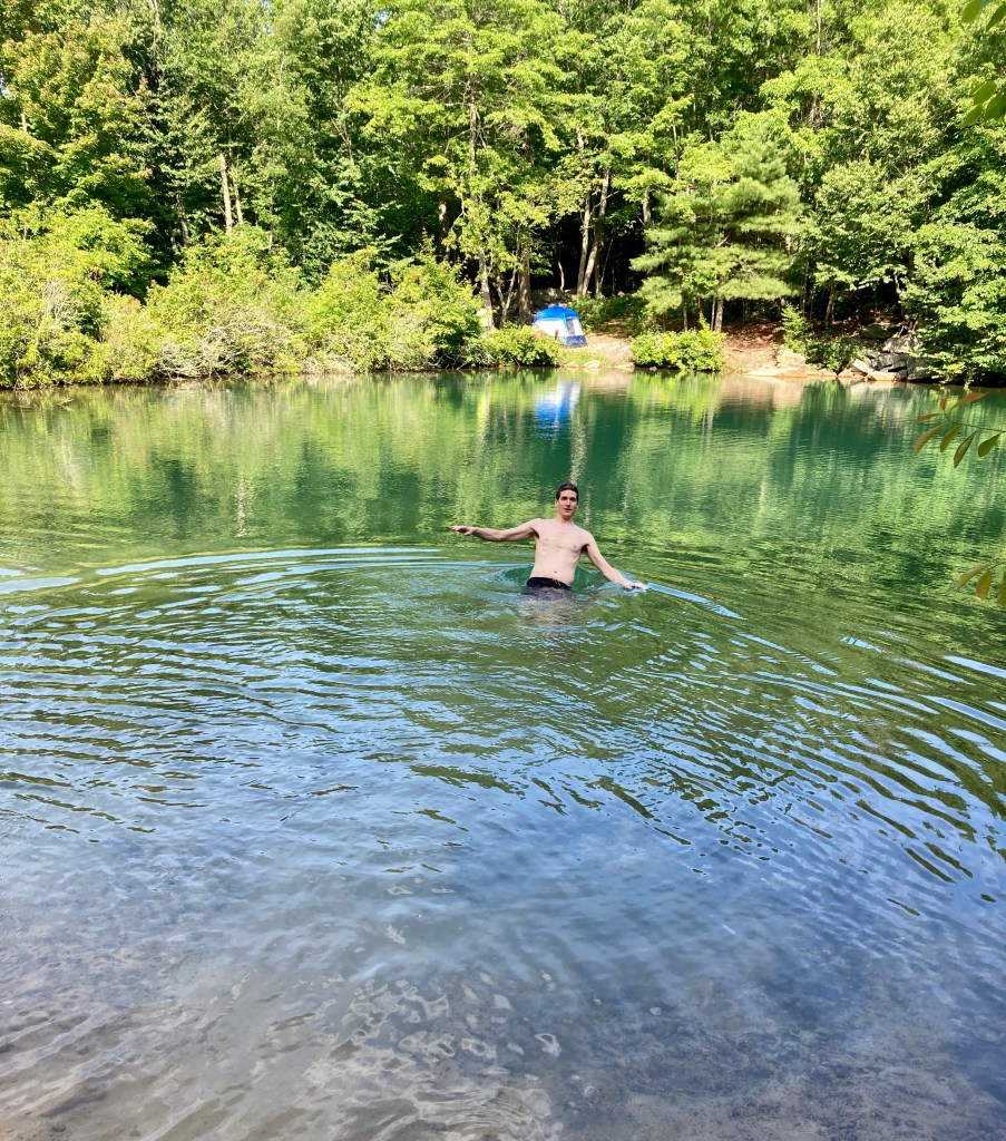 The Pond was delightful. I immediately jumped in and swam around as others debated hydrothermal dynamics. (The pond initially looked cold). Ultimately everyone jumped in. It was easy to get used to the temperature and it was very comfortable to swim. Jordan held out until I pointed out he could be in the process of creating his life’s biggest regret if he passed on a dip. He decided to hold out for other lifetime regrets and jumped in.