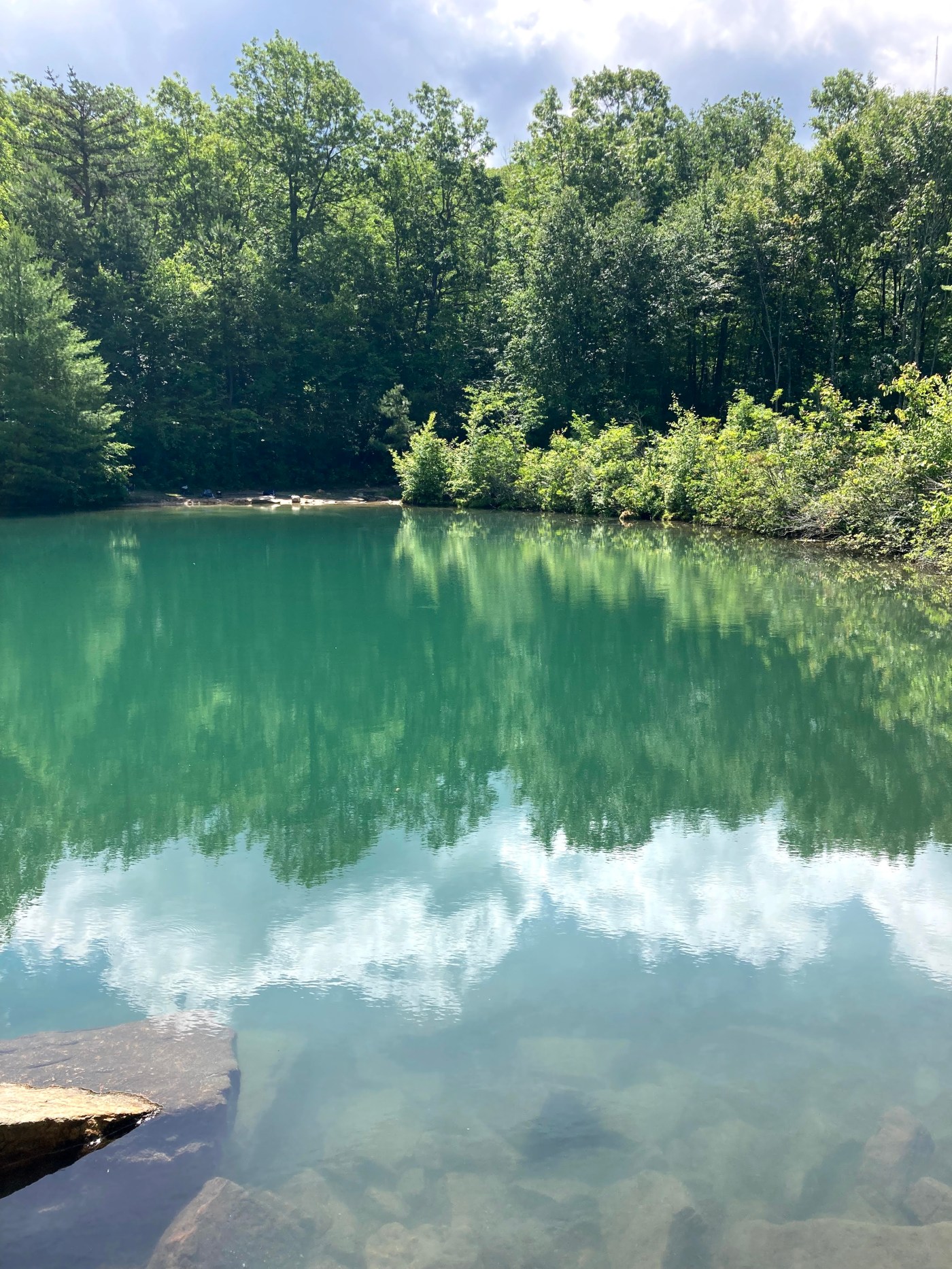 Emerald Pond. Some people—mostly those who have never been to Hawaii—might call this crystal-clear, spring-fed lake on top of Massanutten Mountain prettier than a Hawaiian lagoon at sunset. This was to be the highlight of the Emerald Pond Paradise hike on June 25-27. Five DCULers threw ultralight swimsuits into our packs to seek paradise.