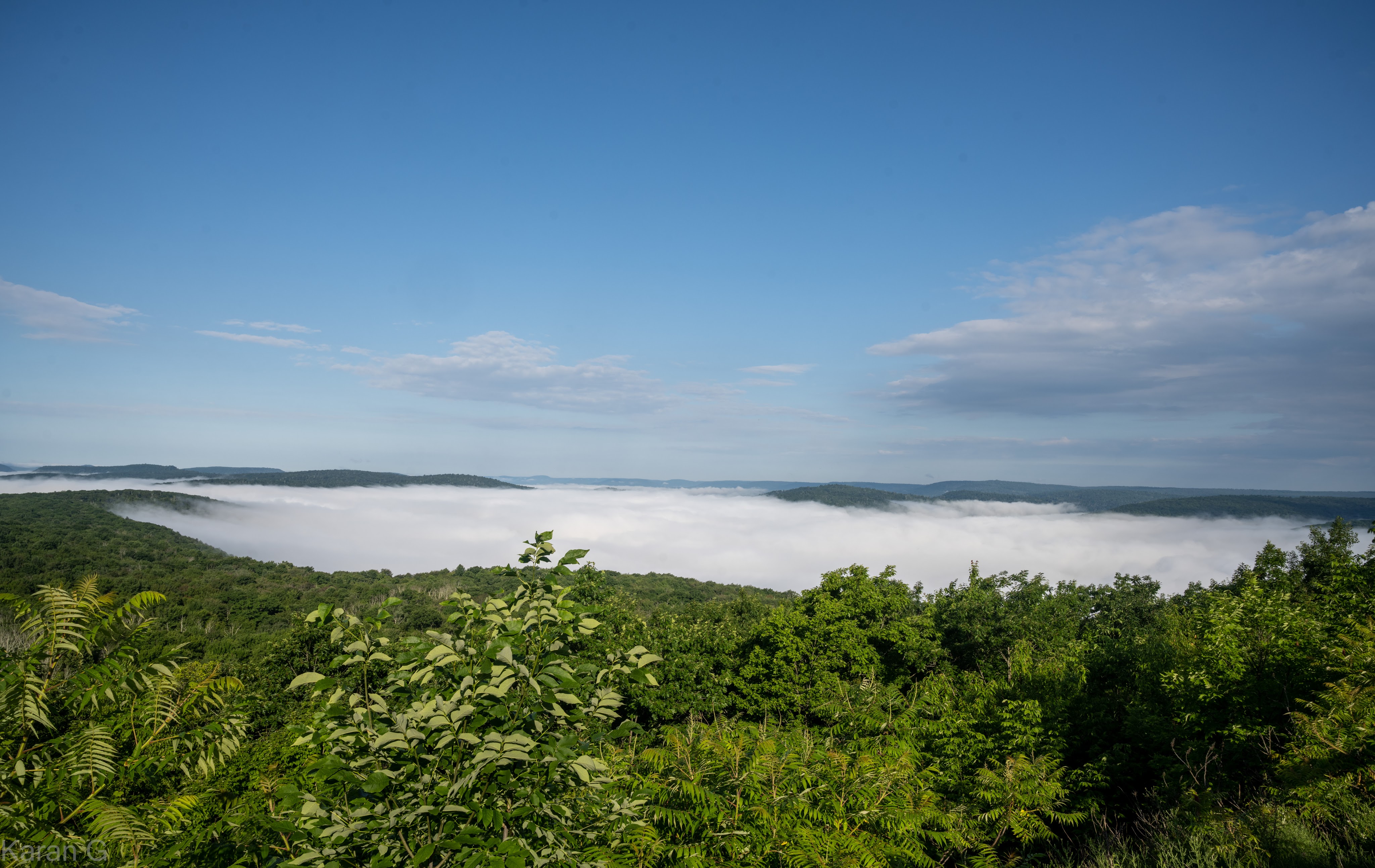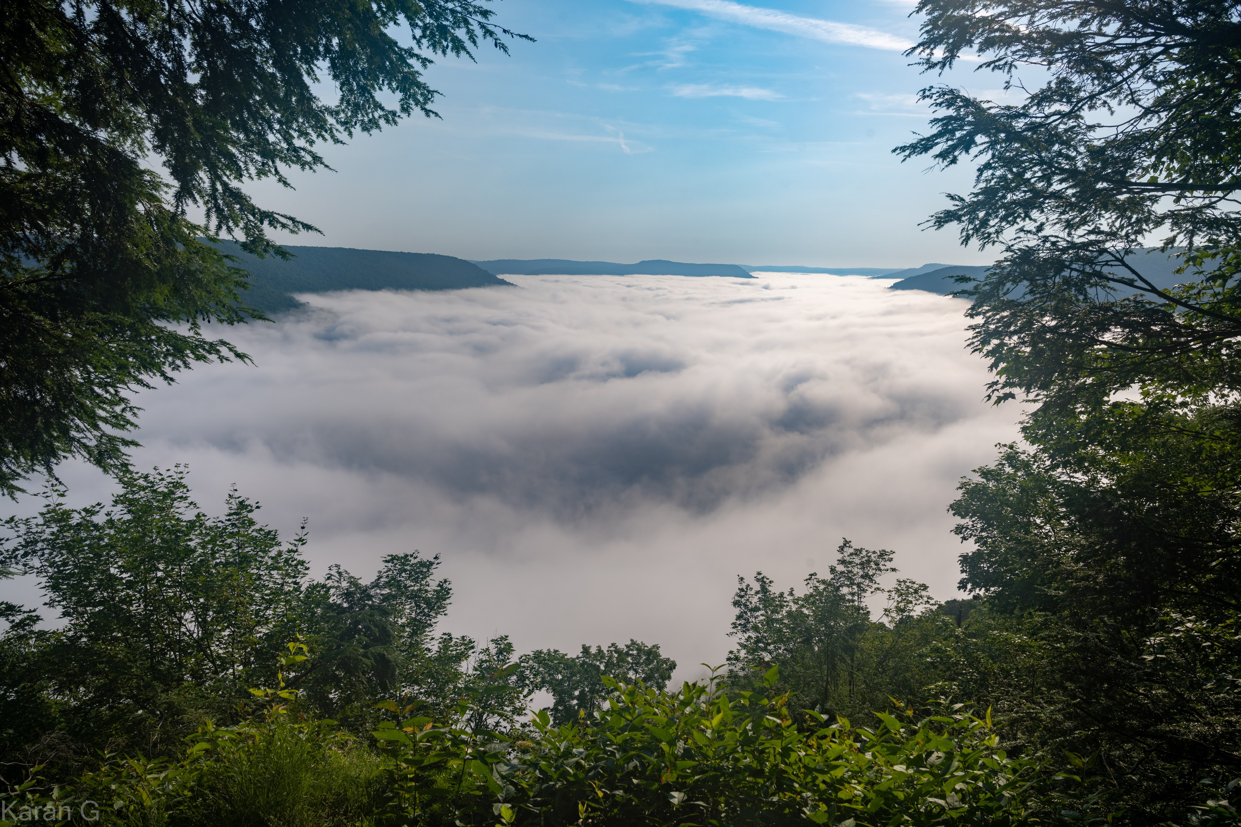 The next morning began with a gentle, long climb out of the valley. There was a spot where a few folks missed a turn, but caught it quickly. At High Knob road, Jonathan, Alex C, and I took a mini detour and we were rewarded with a stunning view of the clouds beneath us. At Detters Run, we saw another set of nice falls brimming with water. The descent into and the climb out of Kettle Creek was steep. On our descent to Brunnerdale Run, we encountered a few day hikers headed towards Angel Falls to celebrate America’s birthday. We enjoyed a long lunch break at the bottom.