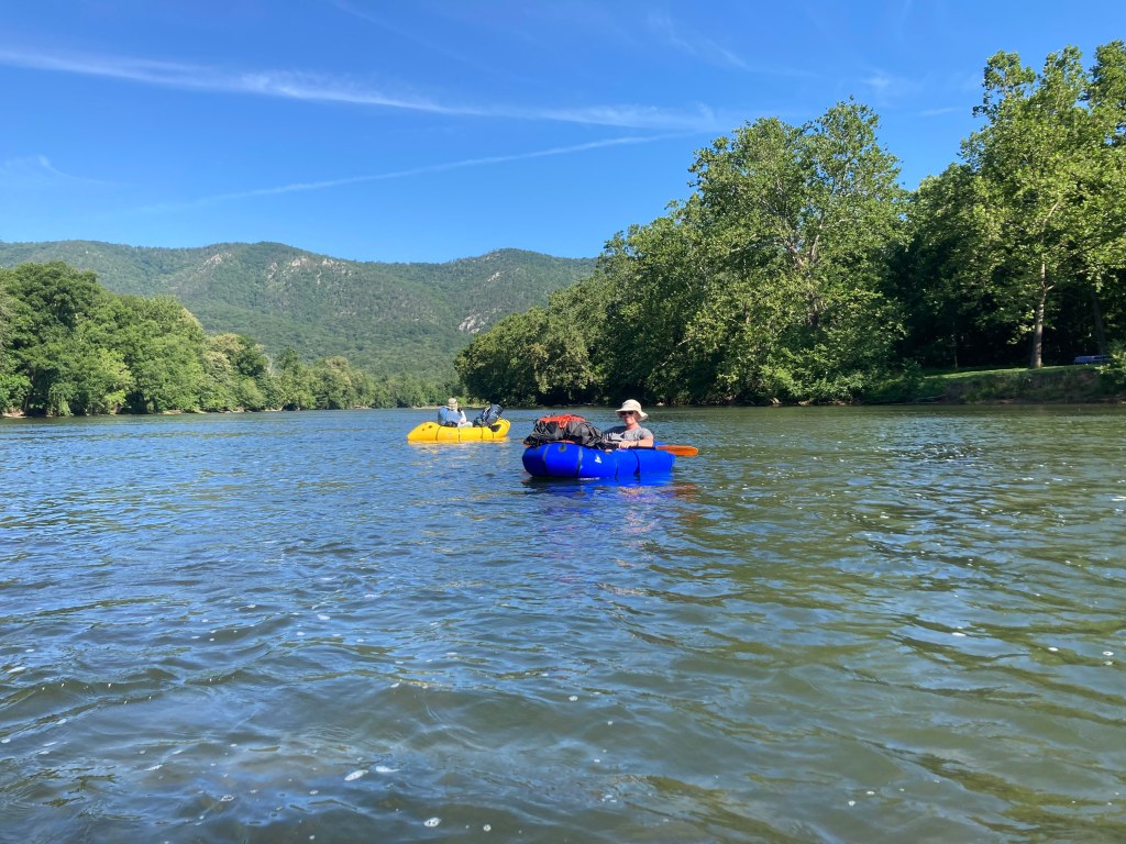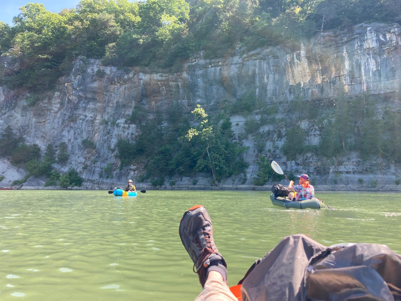 Anyway, we got our rafts into the water, let them temper a bit in the cold water and added a bit more air, ensured our packs were all secured to the bows of our boats, and hit the water! It felt great to be gently carried by the river in the cool morning air. The river was unfortunately on the lower end of “runnable” which meant that to get past certain riffles required some smart paddling and good reading of the water–or getting stuck on your but and having to get out to drag the raft 1-2ft before getting back in. We later learned that the tubing/rafting company was only floating folks on about 3 miles of our 17 mile route.