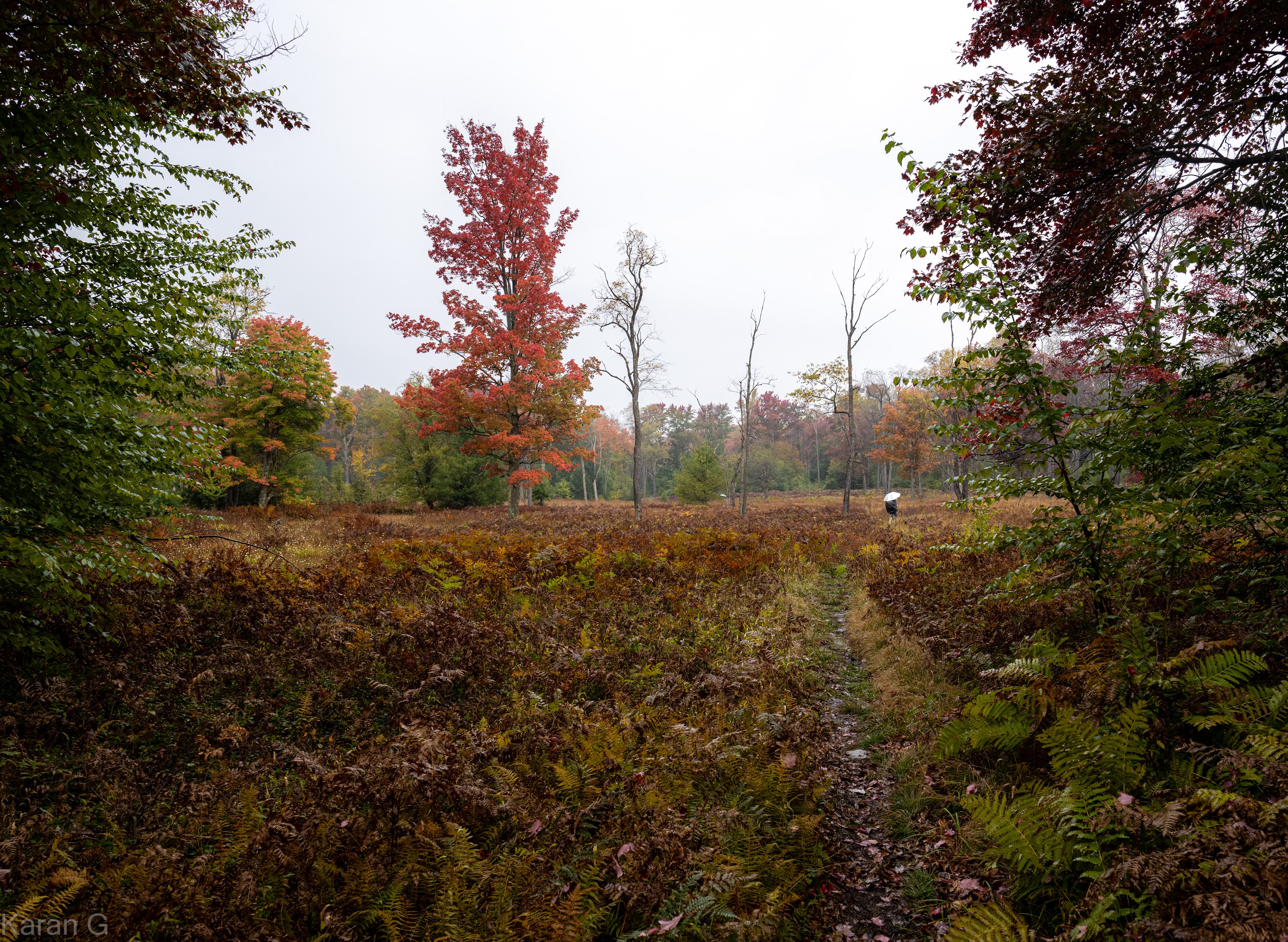 During the first hour of the day, we were constantly moving off trail to allow the ultramarathoners to pass by. Eventually, the race path split from the BFT and we were pretty much on our own. The walk along the nice pine needle-lined path had me thinking about how I’d like to camp in that area. (Maybe next time). Then the stream crossings started. Dimitri counted 18. Some of us were able to keep our feet dry while others didn’t bother. It turned out the “didn’t bother” camp was in the right. It started to rain and came down pretty steadily. Then there was the marsh we had to cross…