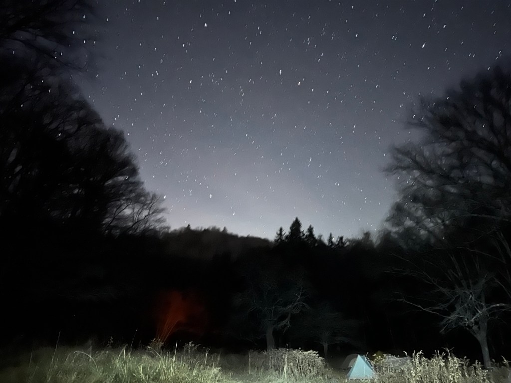 We built a campfire and ate dinner sitting around it together. Several of us stayed out well past dark and since it was Halloween weekend, shared scary stories, mostly related to the outdoors. Vince told of a hooded figure following him through the Arizona desert at night; Bess shared tales of her family’s potentially haunted farm. I didn’t have anything as good so I retold stories from the Dirtbag Diaries ‘Tales of Terror’ podcasts. After foolishly creeping ourselves out right before bedtime, we all retired to our tents and tried to sleep.
