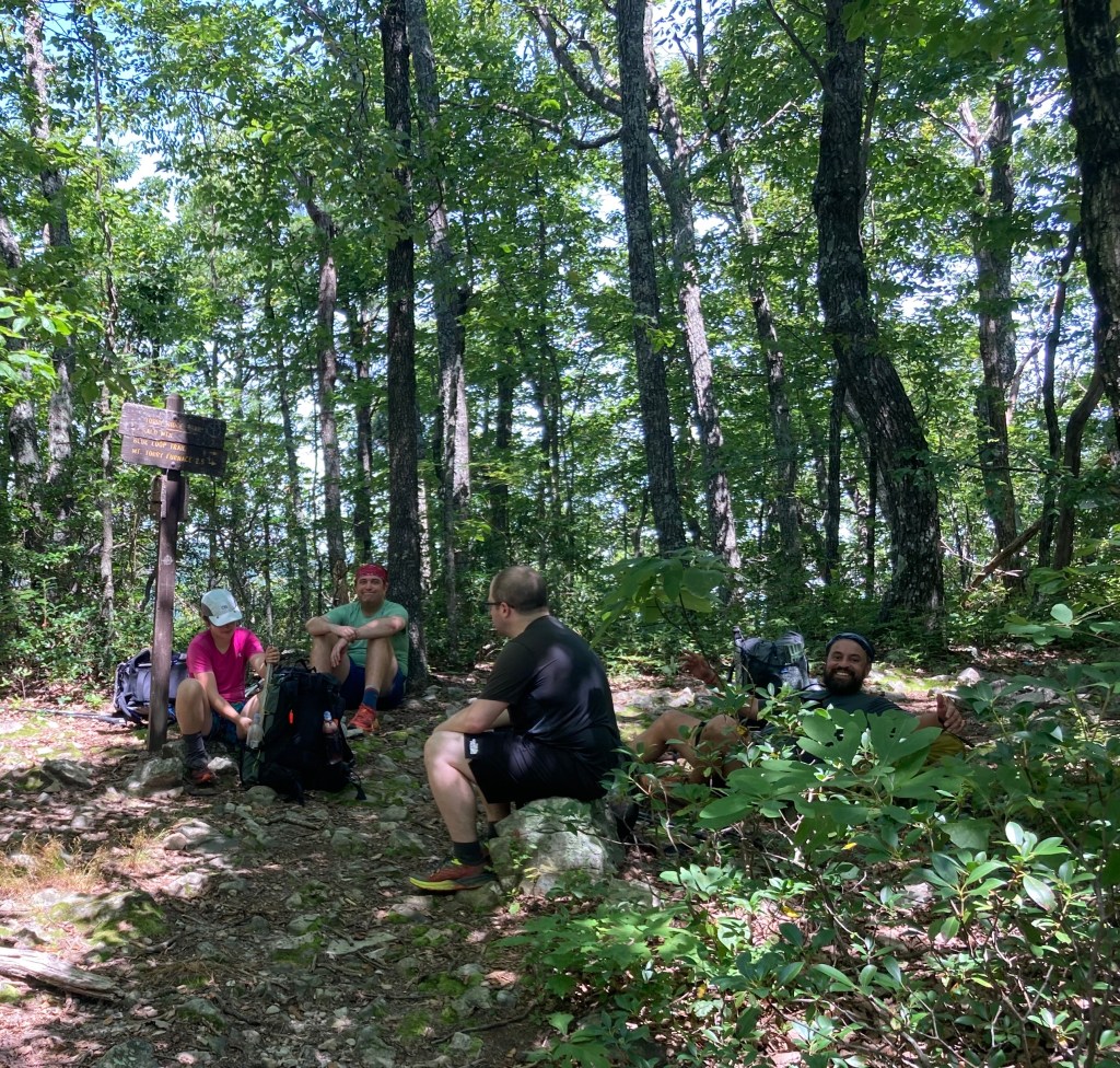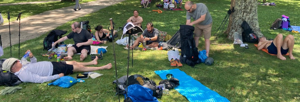 August is the least popular month for backpacking in the mid-Atlantic. However, it is a good time to do some low milage trips with swimming opportunities. (See also “Low, Low, Low in St Mary’s Wilderness”) It is also a good time to gather a handful of engaging, friendly DCULers for an easy, trouble-free weekend in the woods.