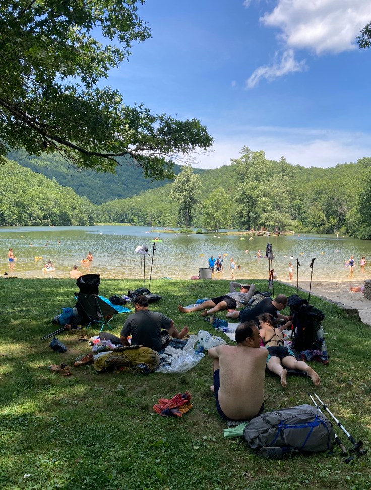 For most of us, it was nap time. We hadn’t hiked far enough or woke early enough to have earned this extended siesta. However, we took it. I couldn’t help thinking that DCUL’s founding generation—Evan (“Whiskey Fairy”), Michael M. (“UTurn”), and Jen (“Shuttle”)—were gravely disappointed in my planning. This trip had neither the “wake early,” nor “hike far,” features of our “wake early, pack light, hike far” ethos. Our leader, Karan (“B.A.”) is likely to cancel my trip posting credentials. My favorite DCUL trips are the ones where we wake in the dark before sunrise, hike all day, and set up camp in the dark after sunset. Oh, and I like it to be in the 40s. This trip had none of those features. However, I admit to enjoying a long, deep nap, complete with vivid dreams. The breeze off the lake on my swimming-cooled skin felt delightful. I was happy.