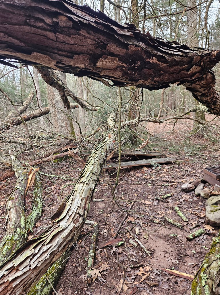 The section of trail around the Devils Nose overlook was one of the highlights of the trail for me so far. It was this pine tree oasis where you would think one doesn’t belong, but it was there. I’m guessing that’s where the shelter name “spruce pine hollow” comes from. Man, I’m so smart. We got some nice ridgeline hiking for some miles and officially passed the halfway point of the Tuscarora before we descended down to the Spruce Pine Hollow Shelter. We were treated to a World War II battlefield of destruction as a massive tree had fallen down. Somehow the shelter had dodged the worst of it, but we couldn’t say the same for the picnic table and bear pole. I don’t know why there was a bowsaw in the shelter, but we had some time to kill so we all took turns doing some shelter maintenance. Nothing like some impromptu DCUL trail maintenance!