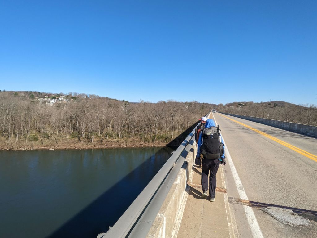 We still had some ways to go. I tried to pump everyone up. “IF WE DON’T DO THIS, WE’LL NEVER FINISH THE TUSCARORA TRAIL!”. It seemed to work, and we nimbly picked our way through the remaining 5 lanes of traffic. Now we just had to cross the river with floating logs and man-eating alligators. Things were looking very dangerous. If we timed it right, we might be able to hop across the logs without getting eaten.