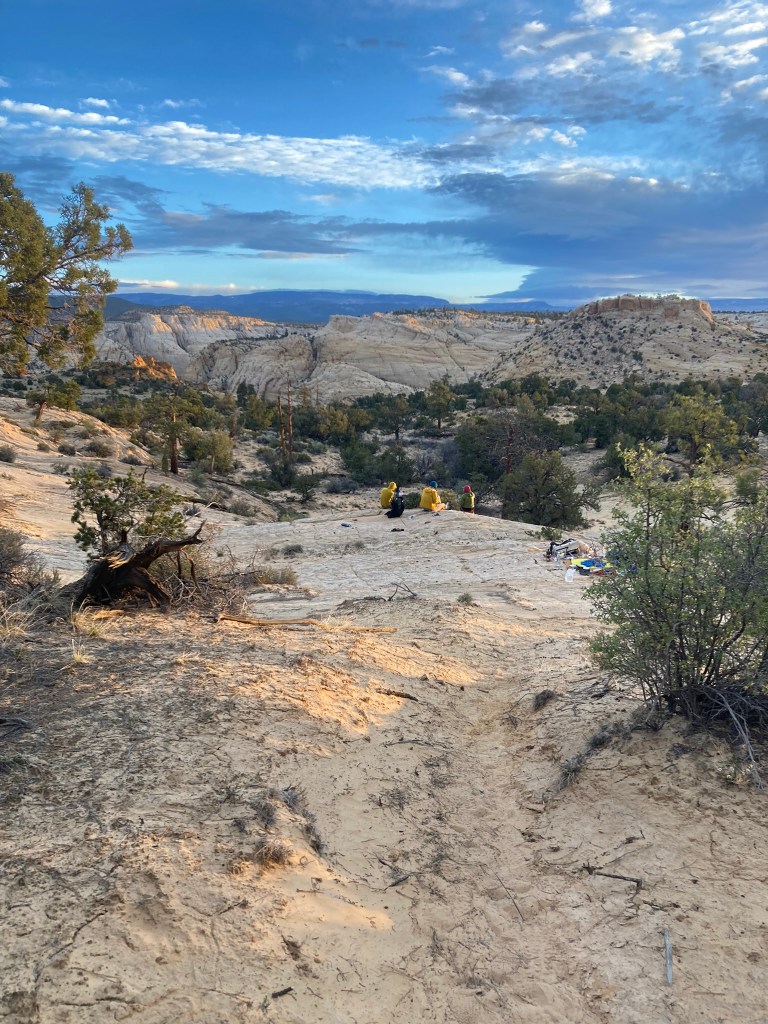 At this point, our experience dramatically improved. We discovered an epic campsite high up a mesa overlooking the intersection of the Harris Wash and Escalante canyons. Looking down into the canyons, we marveled at the green canopy of the trees that gilded the stream and river. The contrast between the lines of green vegetation against the red rocks and sand everywhere else was stunning.
