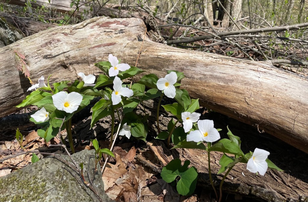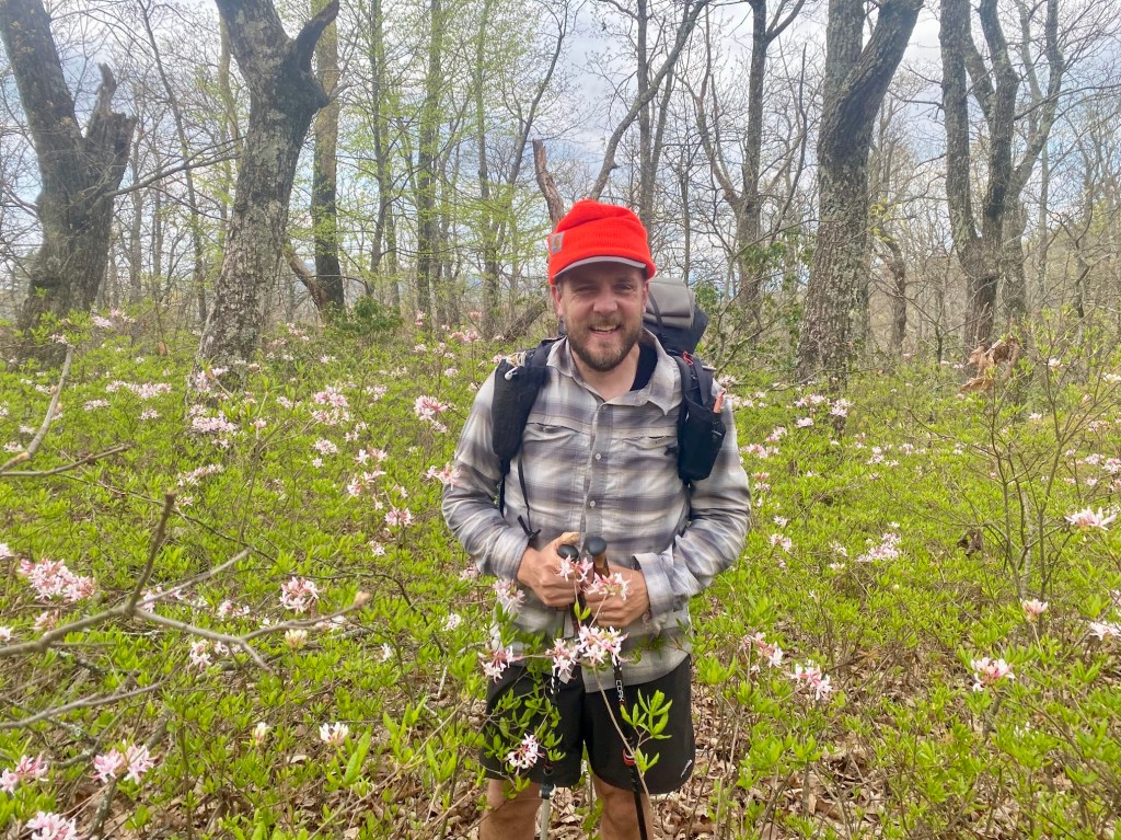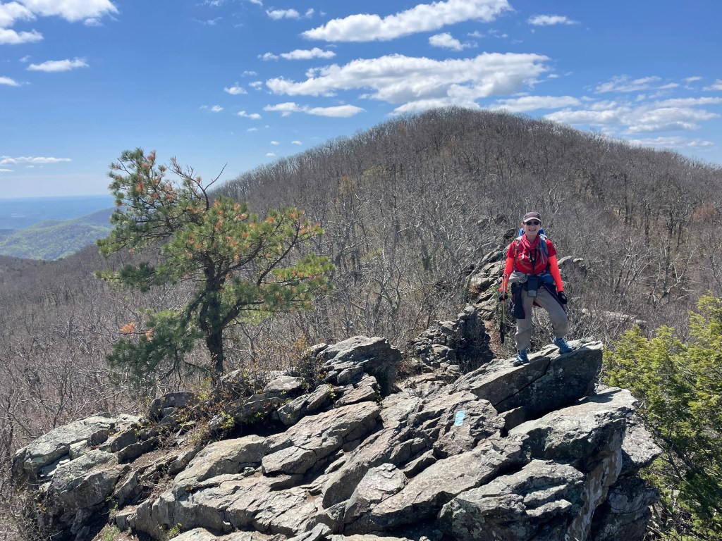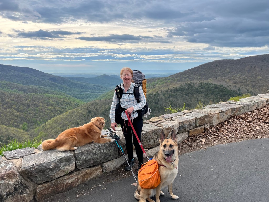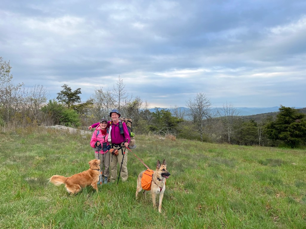 April 22-26, 2024 four DCUL backpackers and two hiking dogs covered a delightful 57-mile section of the Appalachian Trail (AT) from the Bearfence Rock scramble south to the Shenandoah National Park (SNP) boundary at Rockfish Gap. We were treated by abundant wildflowers, butterflies, sweeping views, and jovial companionship.