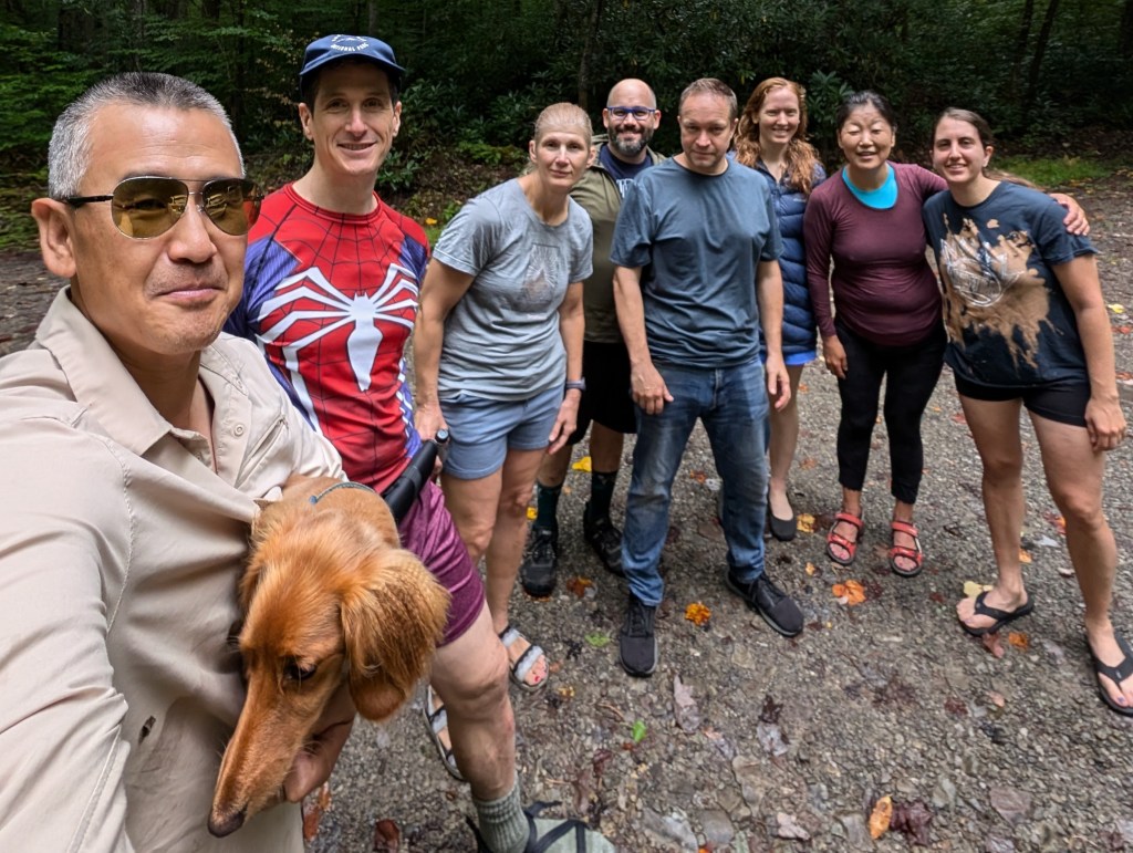I arrived alone at the trail junction with the Myilus trail and the final stretch to our parked cars. This is where I recommend future DCUL backpackers camp on Friday nights to avoid the noisy Lower Glady campground. I stopped to clean and bandage a cut that was bleeding and wait for all the otters. We descended downhill off the plateau mostly all together, with Sam leading the way, tugging on his leash. He recognized this part of the trail from Saturday morning and was eager to get to Two Gang’s car to rest. We hiked with a light jog just to keep up with the little guy.
