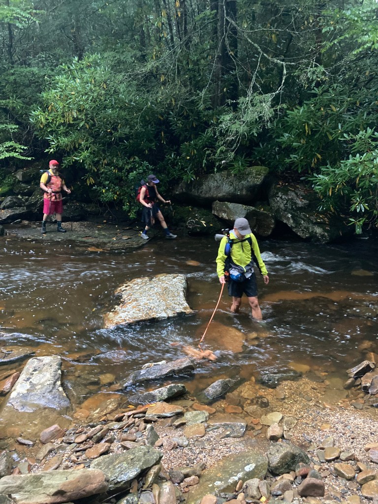 The trail skirted Otter Creek for a while. It alternated between flat to hilly. Some of the hills were “hold onto tree and roots to climb and descend” steep. Otter unintentionally demonstrated his otter skills by sliding down a couple of the muddy slopes along its bank. At camp that night—and this is a real quote—he asked, “can someone take a picture of my backside?,” before going to the creek to clean up. It was covered in mud from his slides.