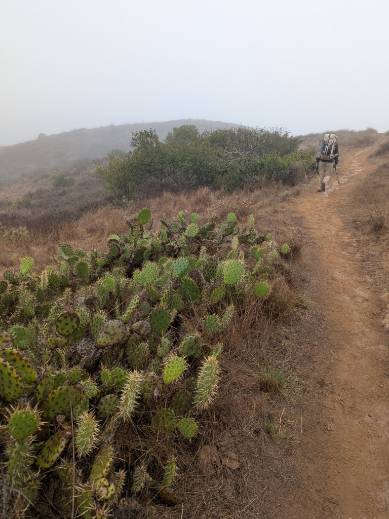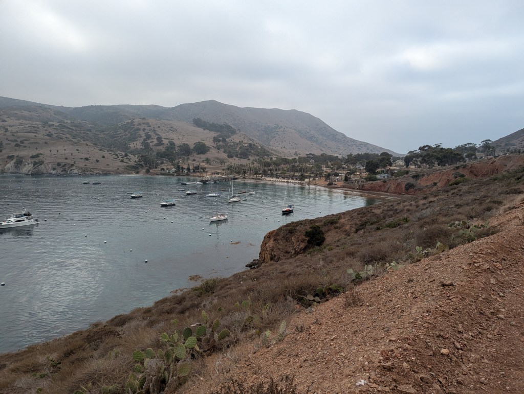 Day 1 had us grabbing the 6am ferry from Long Beach to Catalina Island and hiking from Avalon to Little Harbor campground. Steve and I toured Avalon a little bit; killing time until 8am when we could grab fuel at Chet’s Hardware. Once we had fuel, we began the ascent up from town on the ridgeline. Catalina Island’s trail was quite different from the mid-Atlantic trails I’m used to in that there were pervasive cactuses, wide open areas with virtually no tree cover, and lots more dirt than rocks on the trail.