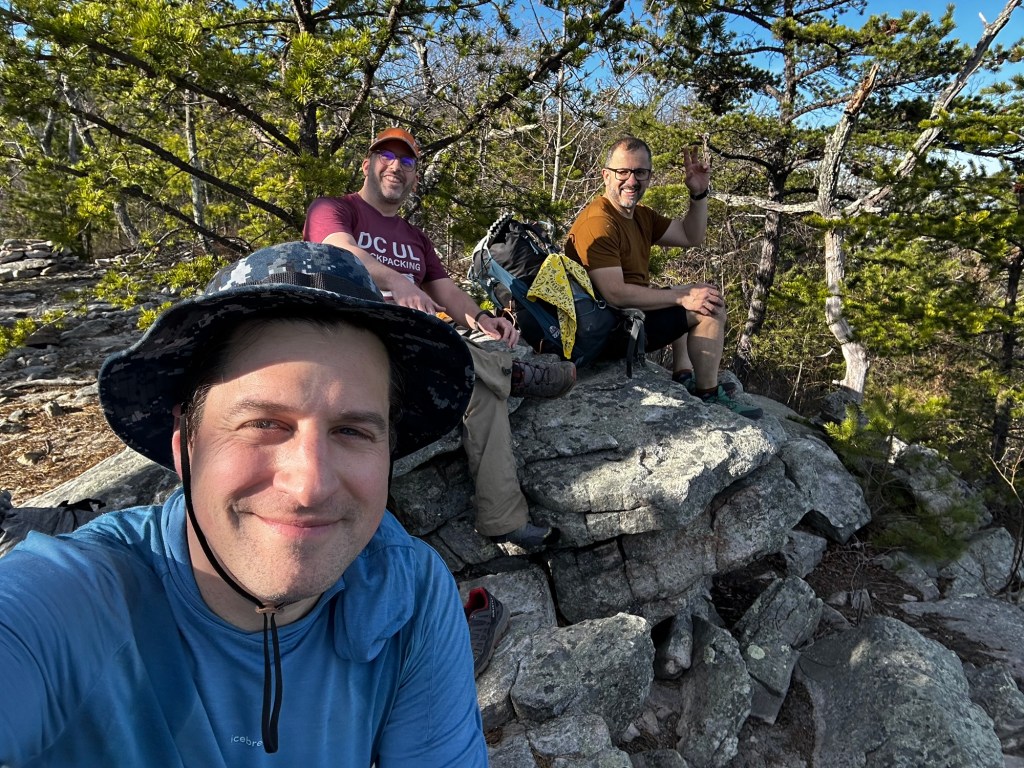 13 backpackers set out on Thursday, March 27 to hike the 71 odd miles of the northern loop of the Massanutten Mountain Trail by Sunday, March 30. This trip has become a DC UL tradition nicknamed the Death March and done annually since 2010. The ridge miles are dry, rocky, and rarely flat for more than a few steps. When hiked in late March, one contends with cold AND heat and lack of spring green but gains few bugs, leaf-free views, and avoids the oppressive high temps of mid-Atlantic summer. This year, like most years, another DC UL crew of backpackers join late on Friday, March 28 for the second half of the hike and a party-like night at Little Fort Campground on Saturday, March 29, in which surprise guest stars show up with food and libations. Some finish, some don’t. Extra cars around make bailing more doable than more remote trips. Everyone at some point hates this trail and wonders why they do it. Then they get excited about doing it again – especially if they didn’t finish this year.