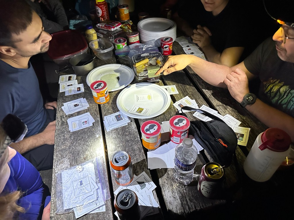 Everyone, eventually, made it to camp as the evening went on, though again, several would choose to call the trip short and not make the final morning miles the next day. One of the highlights of the evening was Beth pulling out the DC UL card game she made for us. Jen made sure we had a proper flag to fly in a campground full of them.
