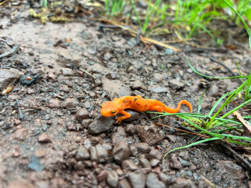 - The newts we saw were juveniles, called “red efts”. Their bright red color signals to predators that they are poisonous. Their skin contains tetrodotoxin, a potent neurotoxin.