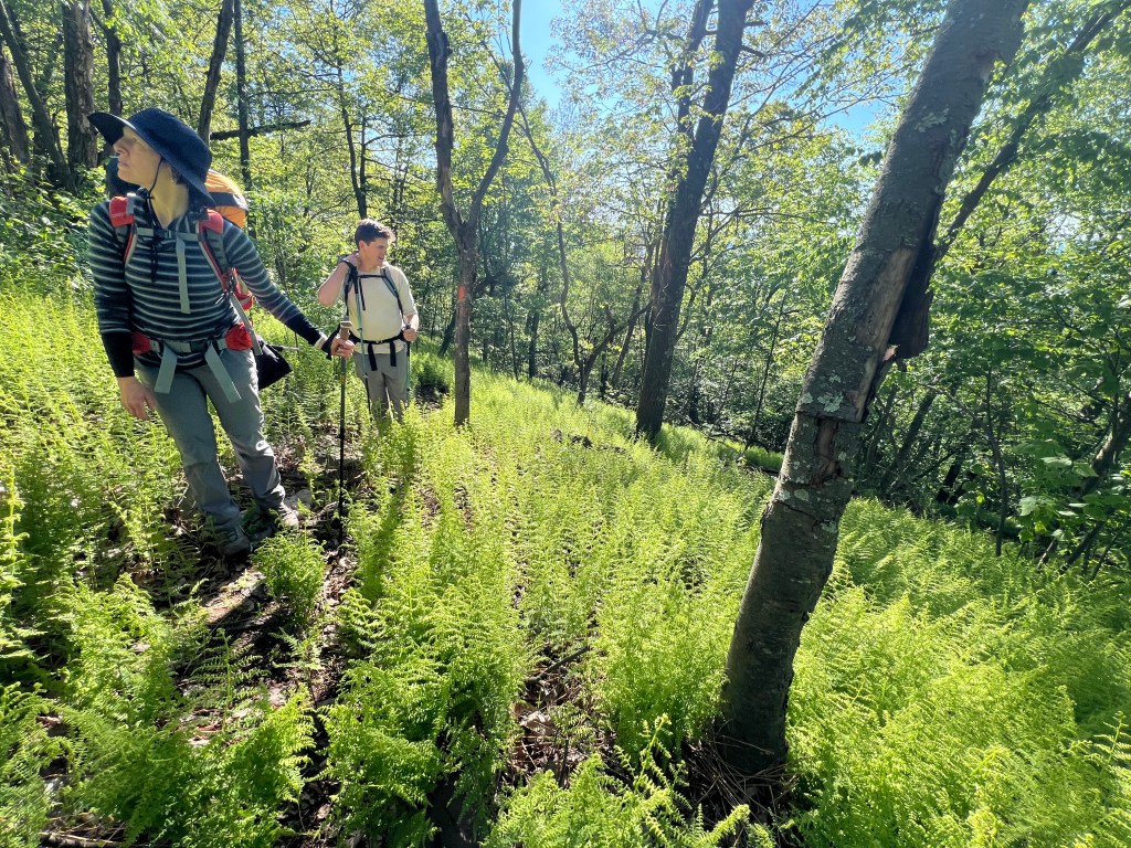 I welcomed the rocks on the ridge to the mud below. We enjoyed the more scenic views, especially at boulder fields. At one, I accidentally led us just a few feet off-trail and stumbled upon four timber rattlesnakes (Crotalus horridus) sunning themselves. After gawking, we heeded the chorus of warning rattles and moved on. Lily quipped this was a sign of good luck, as it was the year of the snake and there was one for each of us.