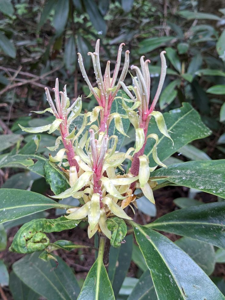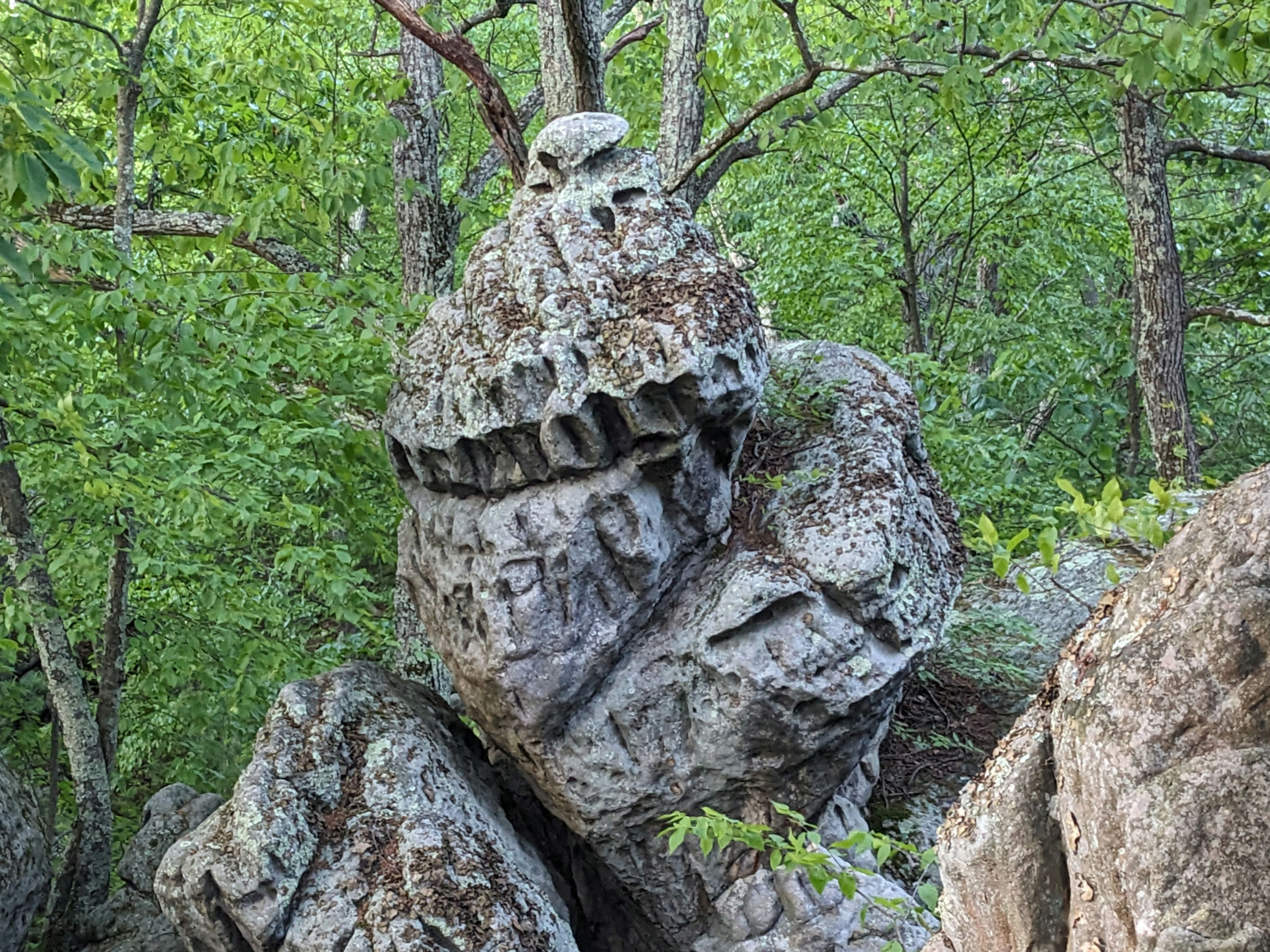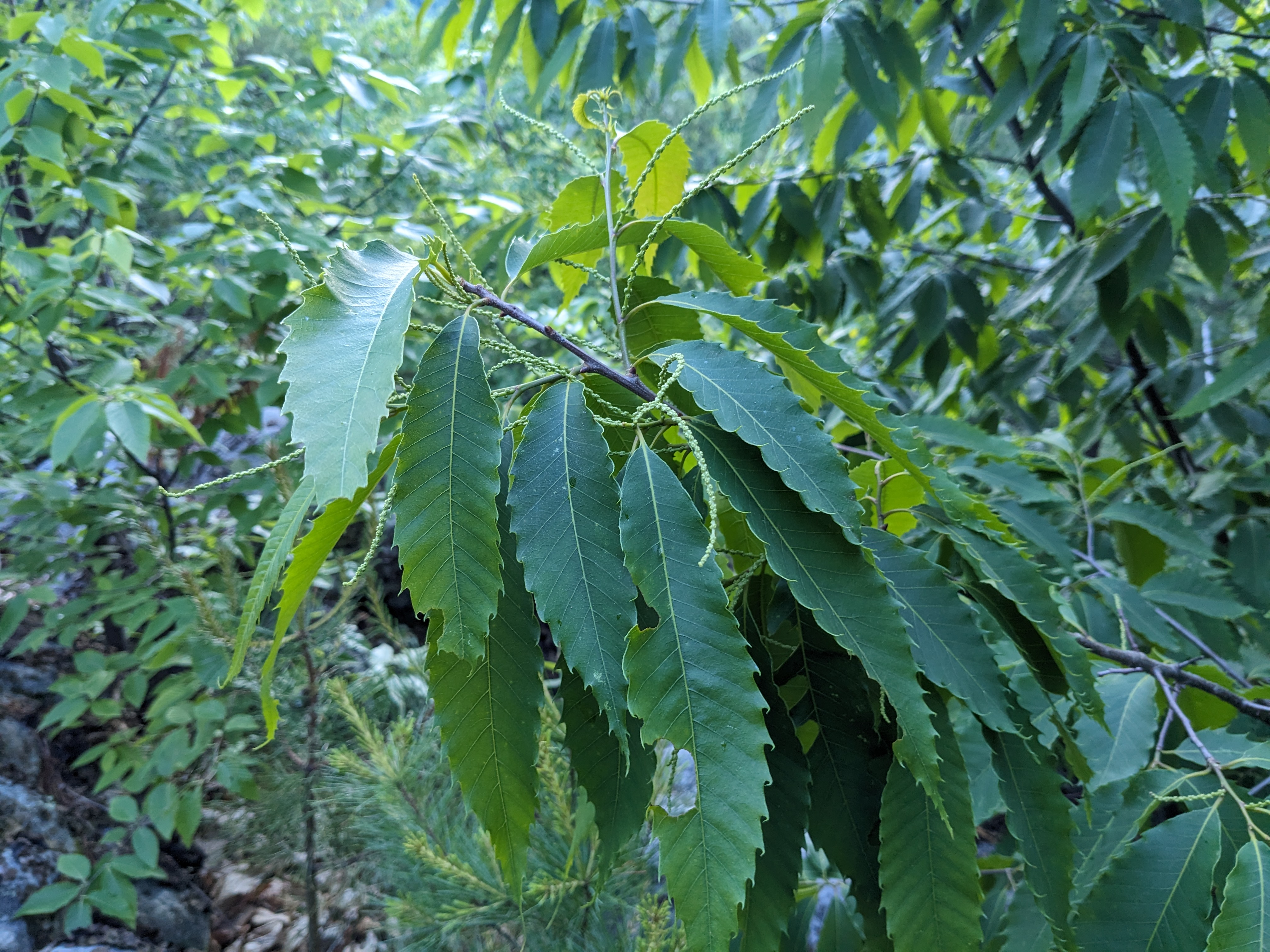 Despite the tight space, it was a neat spot nestled among rock formations the area is known for. At golden hour it had a magically feel, with light filtering through the clouds and illuminating the leaves and stones. A decent overlook nearby offered a sunset view, and I noted what might’ve been American Chestnut (Castanea dentata) nearby.
