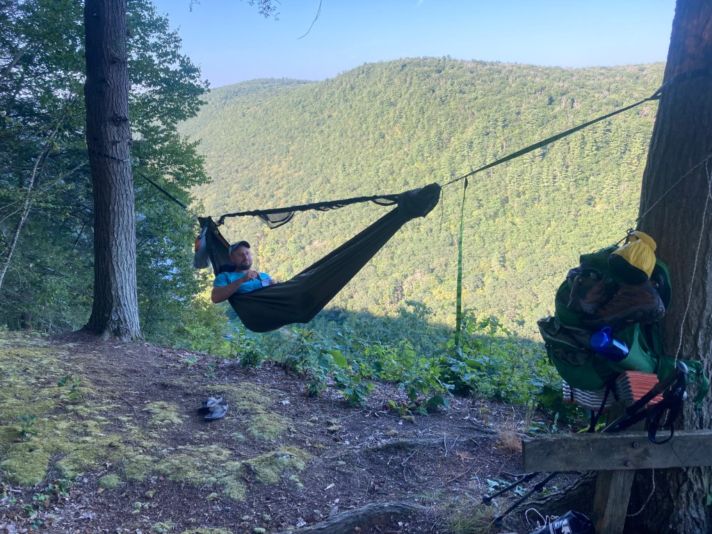 Chris had set up his hammock on the edge of a cliff. I worried about him rolling out. In the middle of the night, I heard a loud crash and was relieved to see him still hanging between the trees.