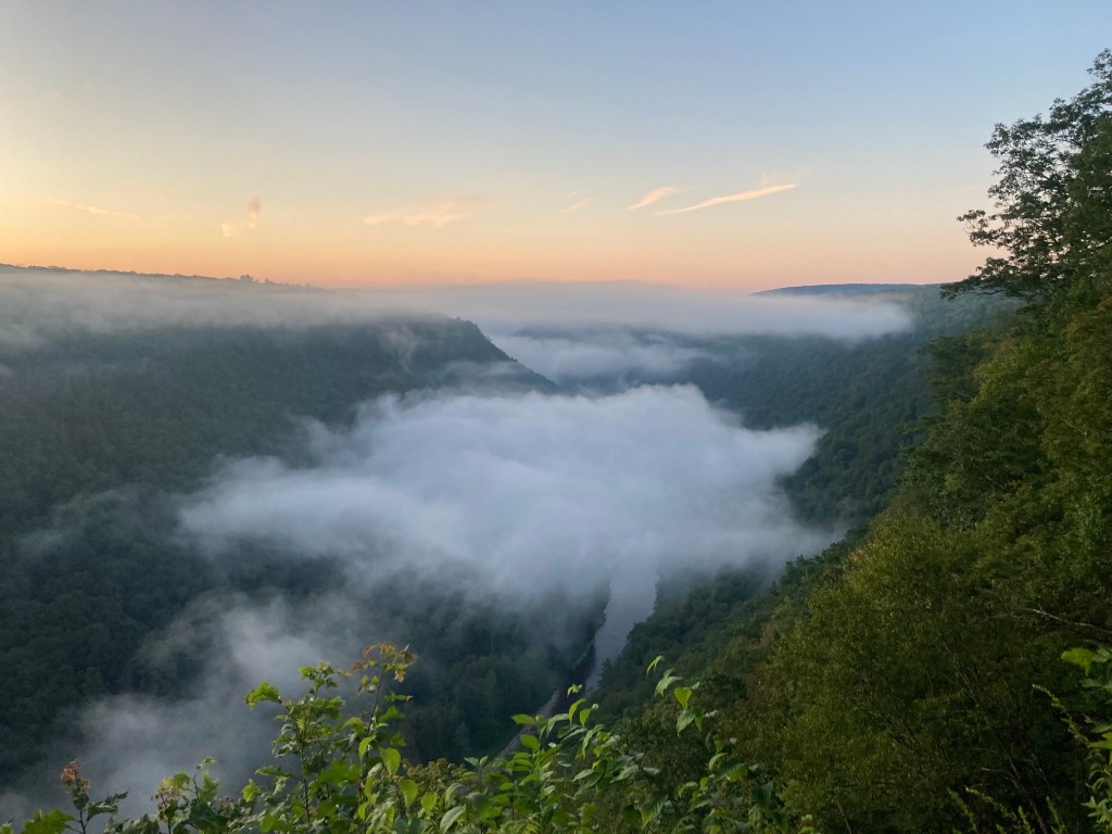 When Emily posted a backpacking trip to thru-hike the West Rim Trail, I initially was uninterested. Located just below the New York line in north central Pennsylvania, it is a five-hour drive from D.C. without traffic. However, there is always traffic Friday evenings out of D.C. It’s far. The West Rim Trail is also short—only 30 miles to thru-hike. The ratio of “driving to hiking” was all wrong. Worst of all, it is not a challenging trail. After an initial 1,000-foot climb from the base to the plateau, the trail skirts the Pine Creek Gorge the remainder of the way without any more sustained climbs.