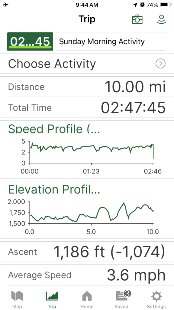 The trail was so easy I needed a way to make it more challenging. A “10 before 10” would do the trick! Hiking 10 miles before 10:00 a.m. always feels like I’ve accomplished something big. However, the feat can be easier or harder depending on the departure time. Obviously, one must hike faster the later in the morning one starts. By starting at 7:00 a.m., I knew I’d have to hike well over 3 miles per hour to complete the 10 miles by the deadline. I started jogging on the gentle trail.