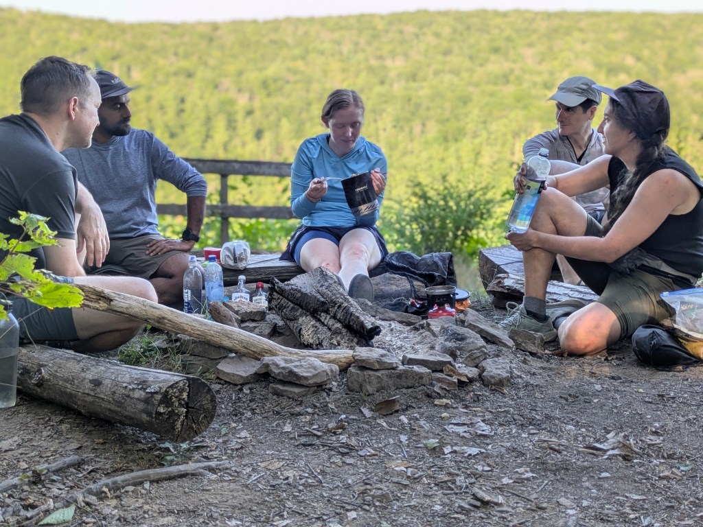 We arrived and set up our shuttle at sunset. A point-to-point hike, we needed to leave cars at the northern terminus to drive us back to our starting point. Emily and Chris volunteered to tackle this 45-minute-long chore. Meeting them in the north was Brian and Laxman, who drove to the trail from Ohio.