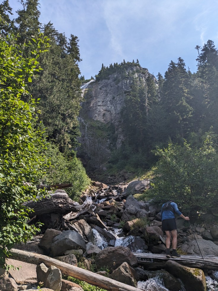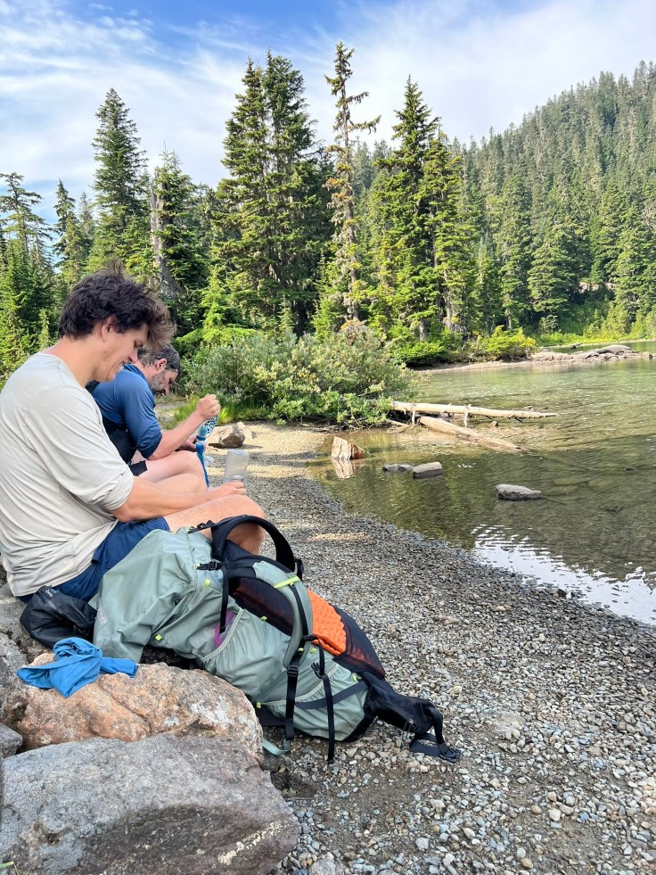 Our highest point of the day was at St Andrew’s Lake. This was a near alpine environment, where I saw frogs swim away as I filled up water. Lily and I enjoyed lunch here before continuing through the scenic Klapatche Park and beyond.