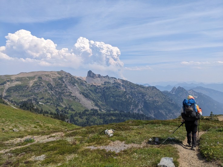 In the Ohanapecosh Park, Lily and I got pretty close to some mountain goats. And we were able to see a massive forest fire form a billowing cloud in the distance. It rose throughout the day like an ominous mushroom cloud. As we later learned, the Wildcat Fire started from a lightning strike and burned through 10,000+ acres.